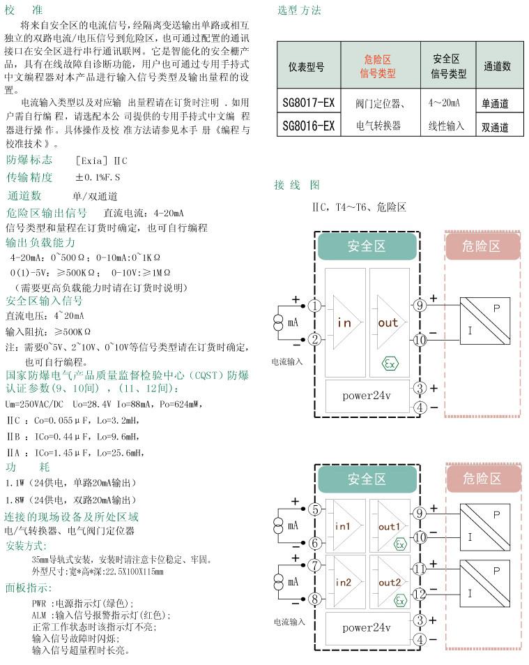 SG8017-EX,SG8016-EX,SG,電流輸入操作端隔離安全柵
