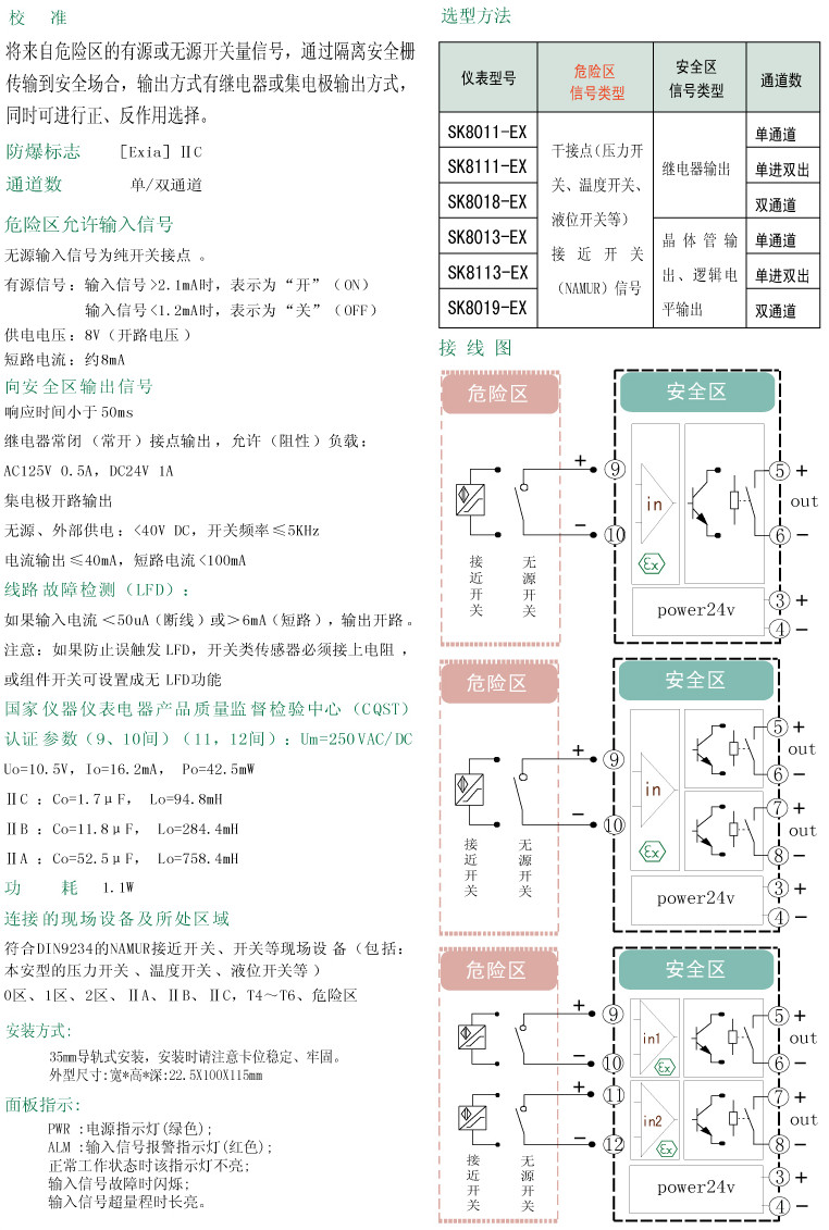 SK8011-EX,SK8111-EX,SK8018-EX,SK8013-EX,SK8113-EX,SK8019-EX,SK,開關量入檢測端隔離安全柵