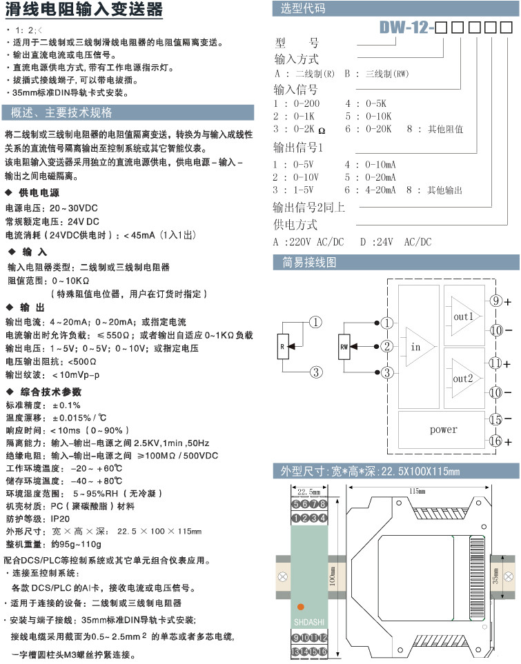DW-12-A1,DW-12-A2,DW-12-A3,DW-12-B4,DW-12-B5,DW-12-B6,DW-12-B8,DW-12,滑線電阻隔離變送器