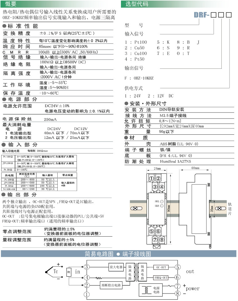 DRF-1F1,DRF-1F2,DRF-6F1,DRF-6F2,DRF-7F1,DRF-OF2,DRF,溫度信號(hào)輸入頻率出隔離器