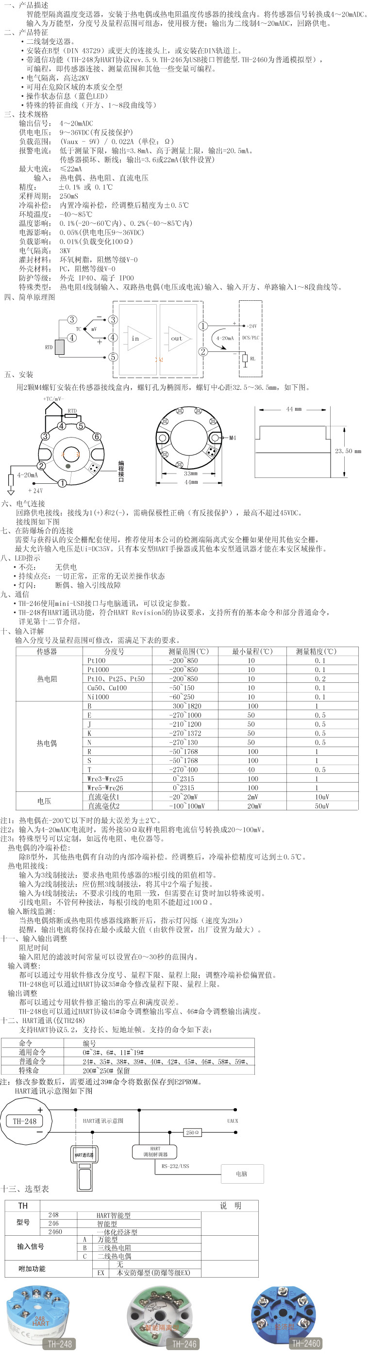 TH-248A,TH-248B,TH-248C,TH-246A,TH-246B,TH-246C,TH-2460A,TH-2460B,TH-2460C,TH-24,溫度變送模塊