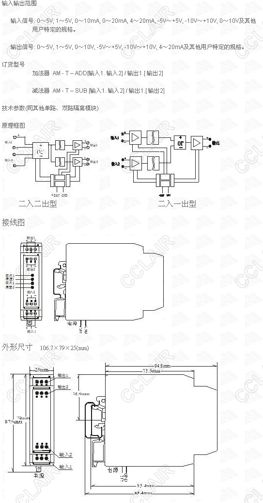 AM-T-ADDI4.I4/I4,AM-T-SUBI4.I4/I4,隔離二入一出模塊