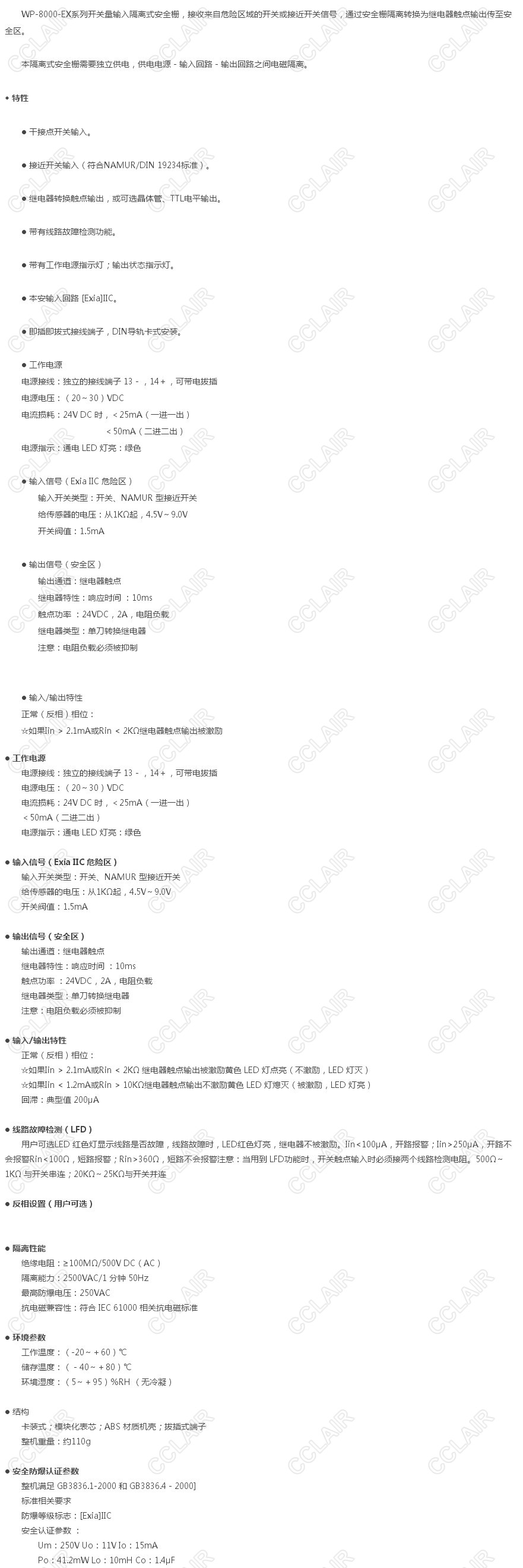 WP-8011-EX,WP-8012-EX,開關(guān)量輸入隔離式安全柵(帶配電)