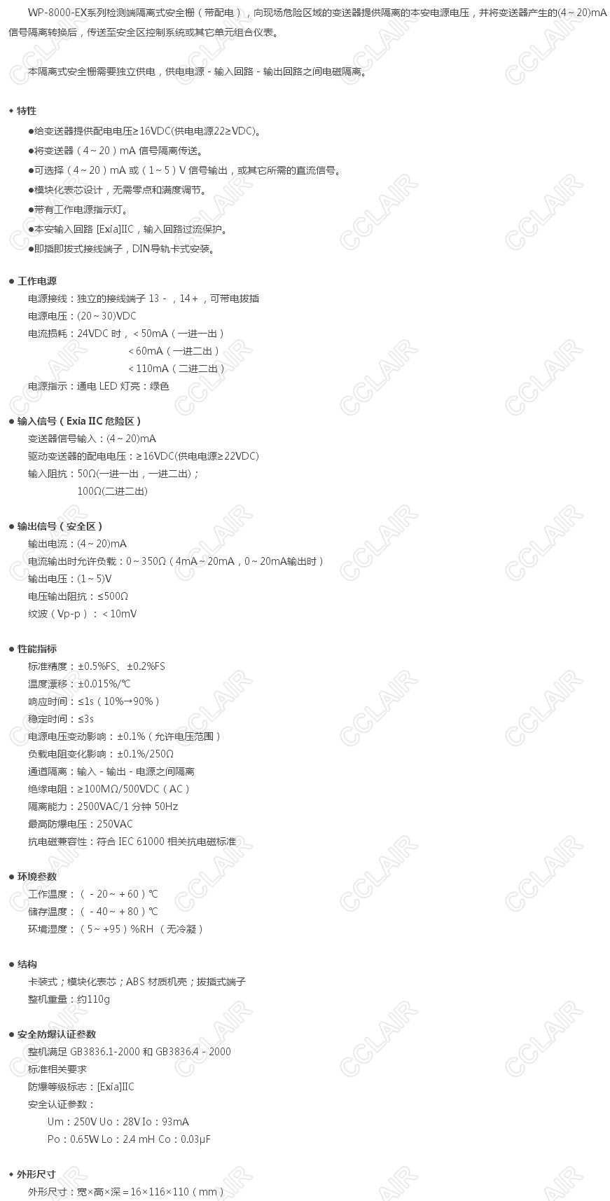 WP-8047-EX,WP-8035-EX,WP-8036-EX,檢測端隔離式安全柵(帶配電)