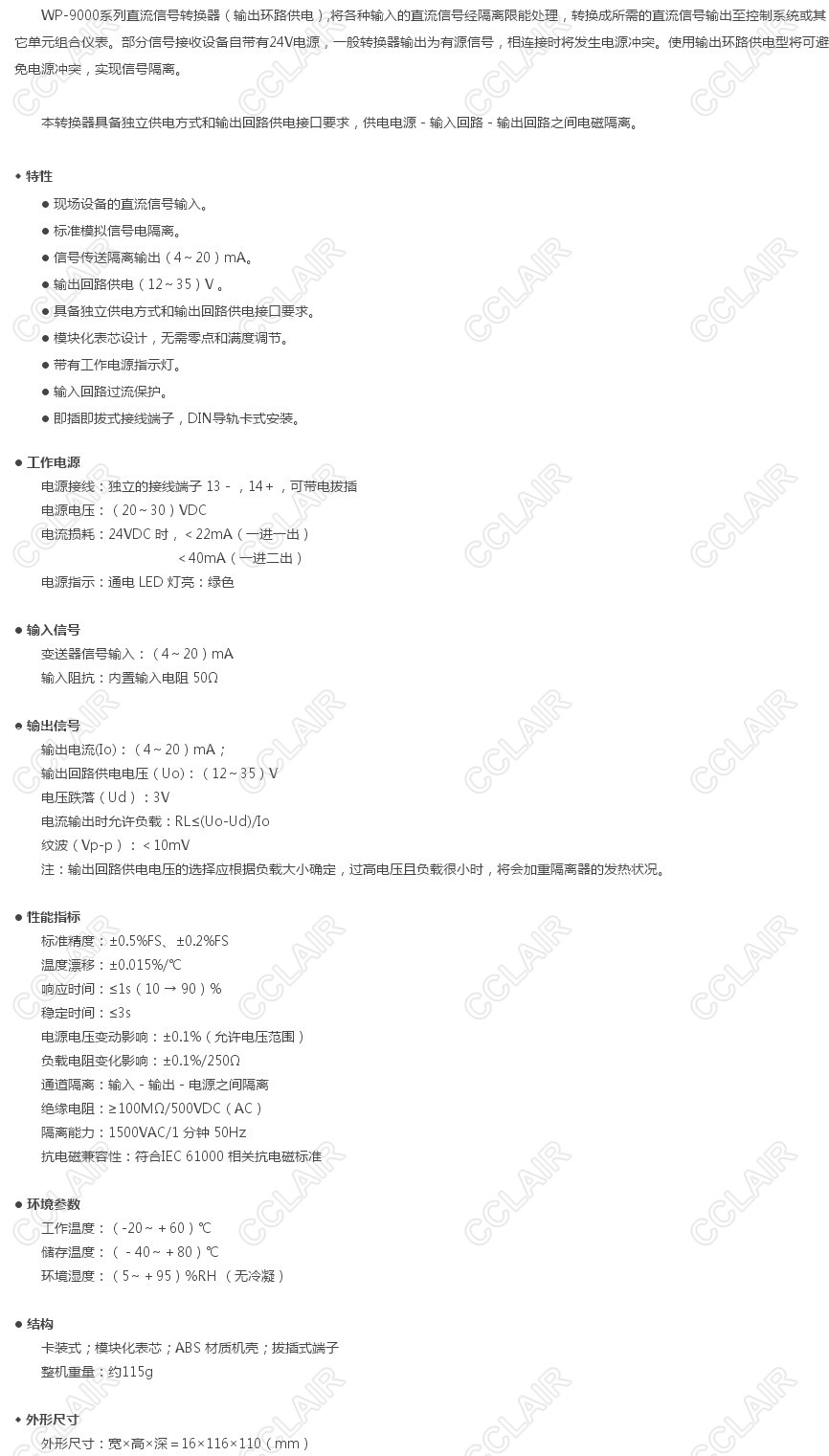 WP-9047,WP-9048,直流信號轉(zhuǎn)換器(輸出環(huán)路供電)