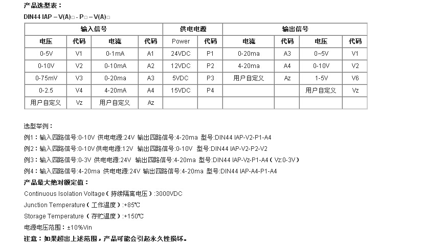 DIN44 IAP-Vz-P1-A4(Vz:0-3V)四路輸入四路輸出模擬信號無源隔離器