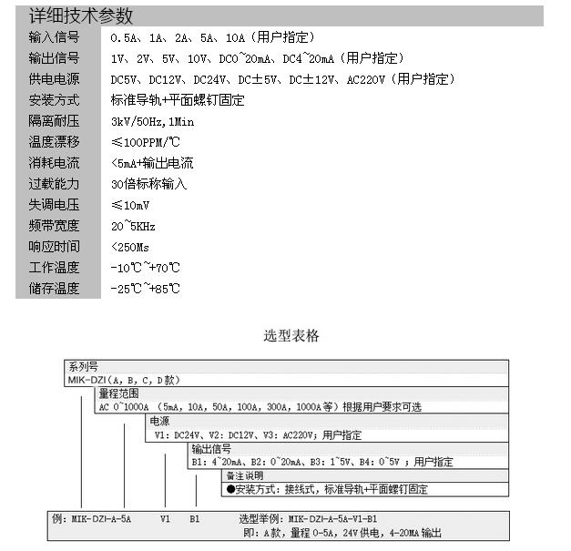 MIK-DZI-5A-, MIK-DZI-5A-V1-B1,單項(xiàng)直流/交流/電流變送器/傳感器 直接接線式.