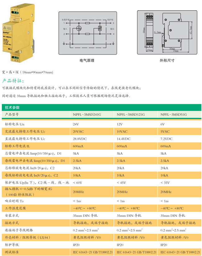 NPFL-3MSD51G,NPFL-3MSD241G,NPFL-3MSD121G,二線制接地型信號浪涌保護(hù)器