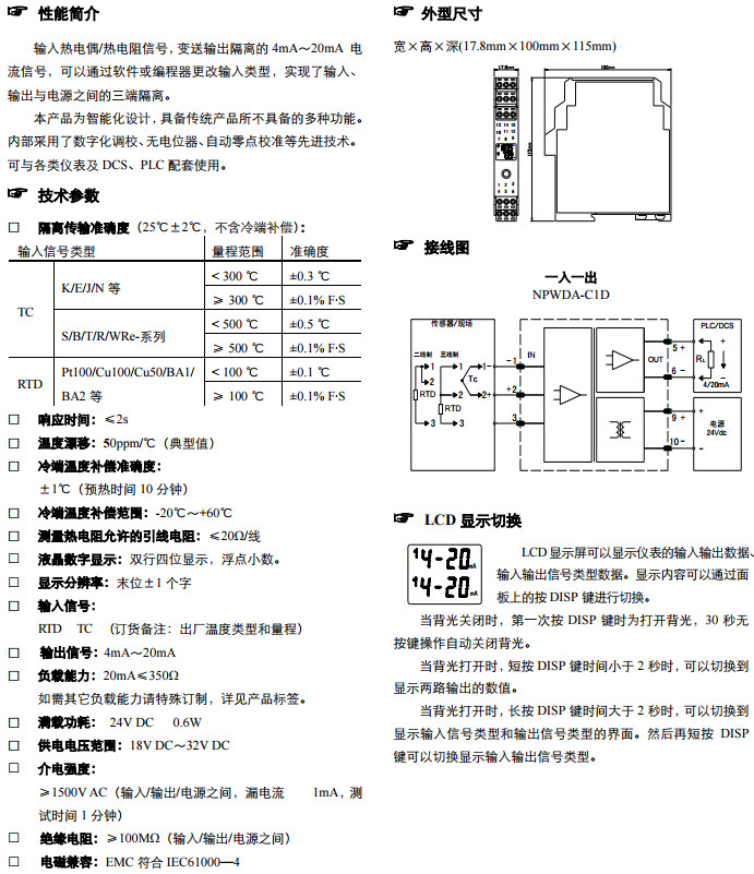 NPWDA-C1D,一入一出溫度變送器