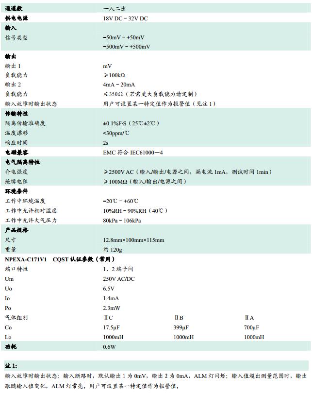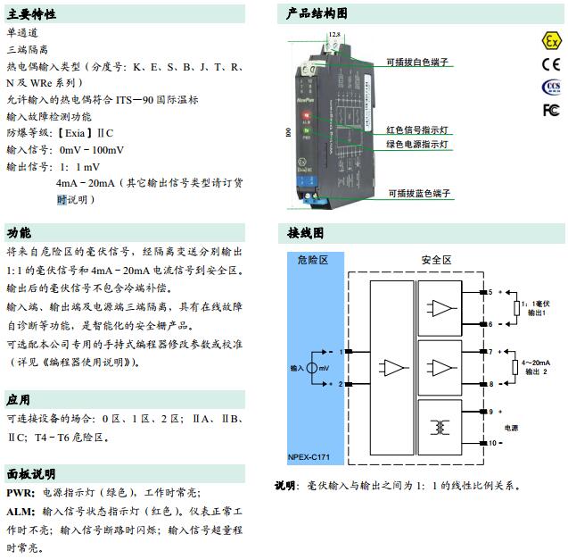 NPEXA-C171,檢測端隔離式安全柵