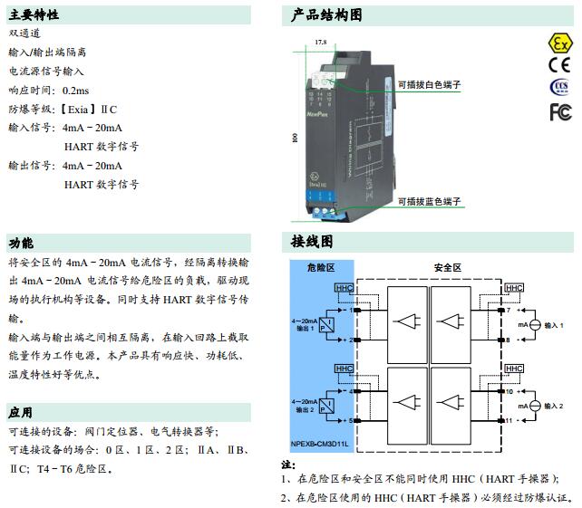 NPEXB-CM3D11L,輸出回路供電隔離式安全柵