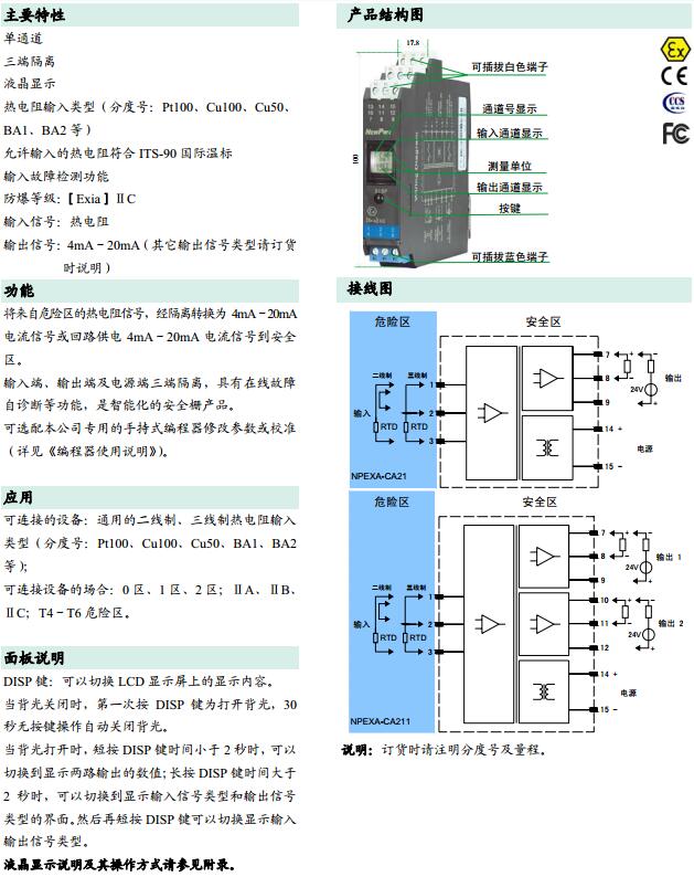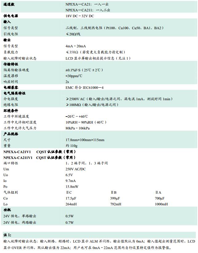 NPEXA-CA21,NPEXA-CA211,檢測(cè)端隔離式安全柵