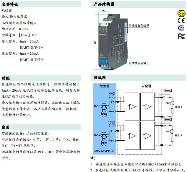 NPEXA-CM3D11L,檢測端隔離式安全柵