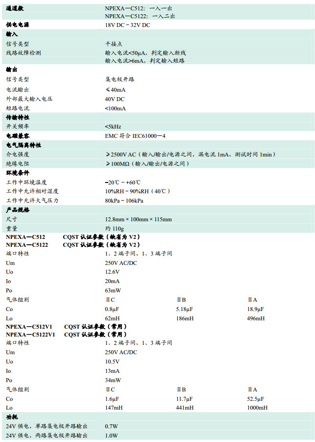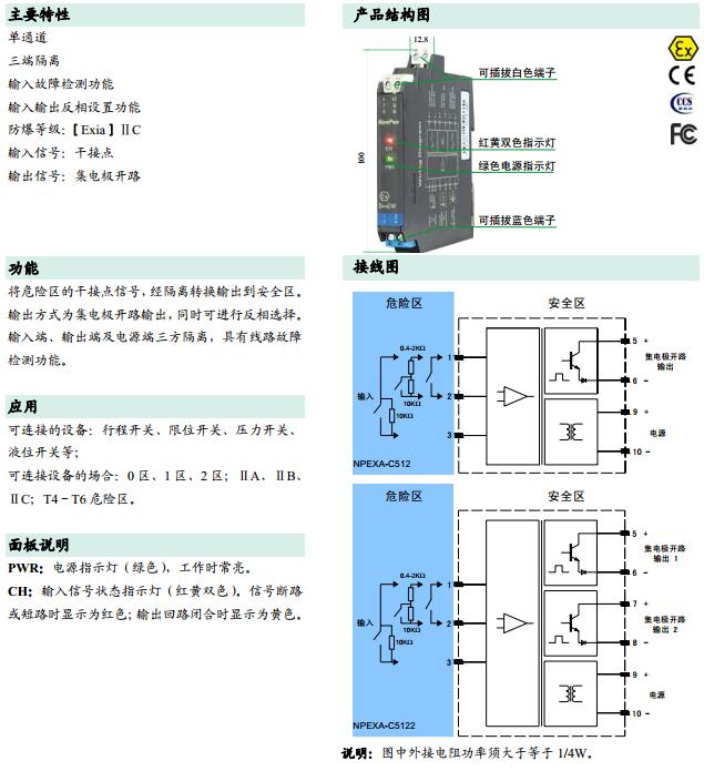 NPEXA-C512,NPEXA-C5122,檢測(cè)端隔離式安全柵