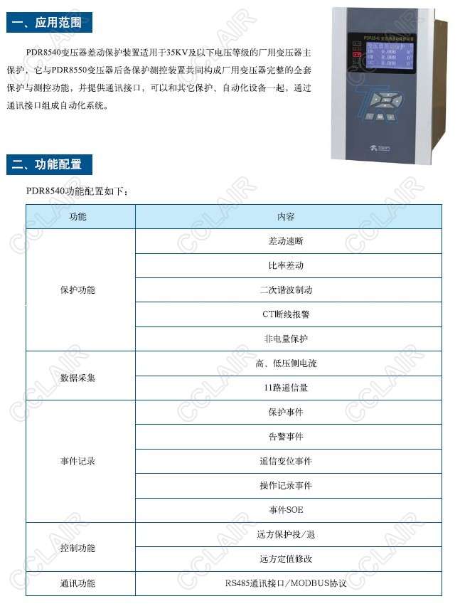 PDR8540變壓器差動(dòng)保護(hù)測(cè)控裝置