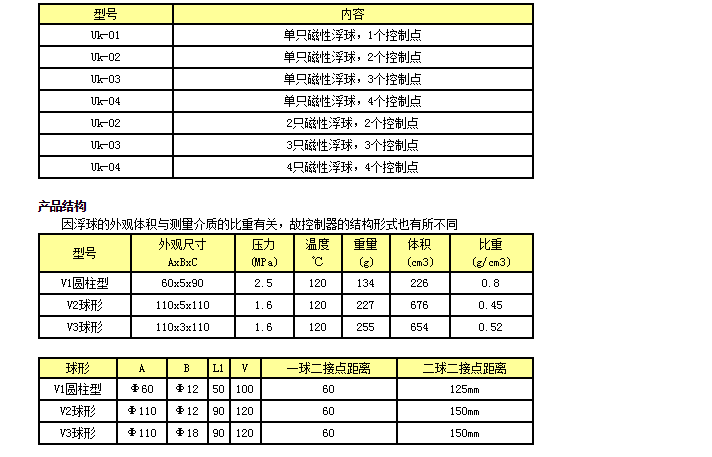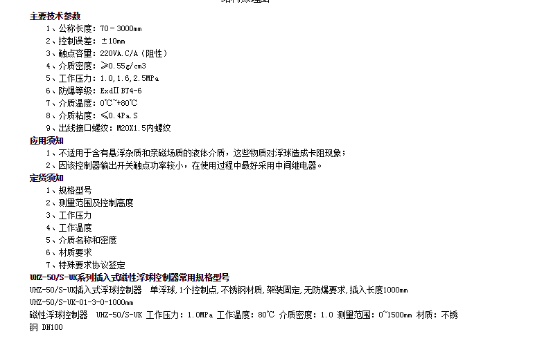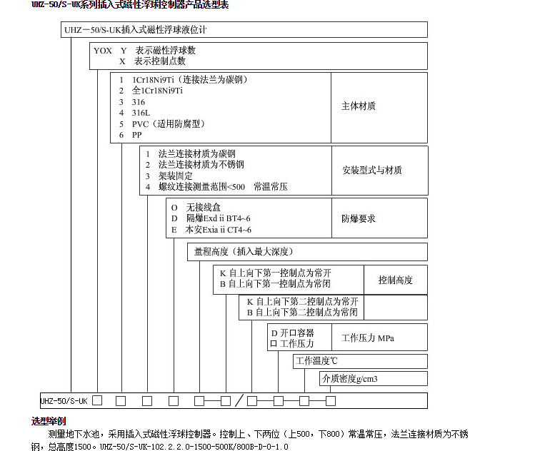 UHZ-50/S-Uk-01,UHZ-50/S-Uk-02,UHZ-50/S-Uk-03,UHZ-50/S-Uk-04,插入式磁性浮球控制器