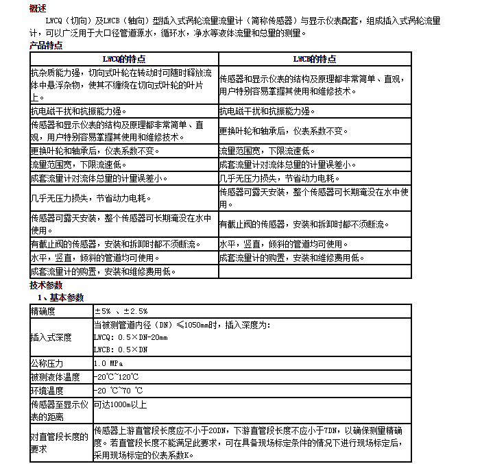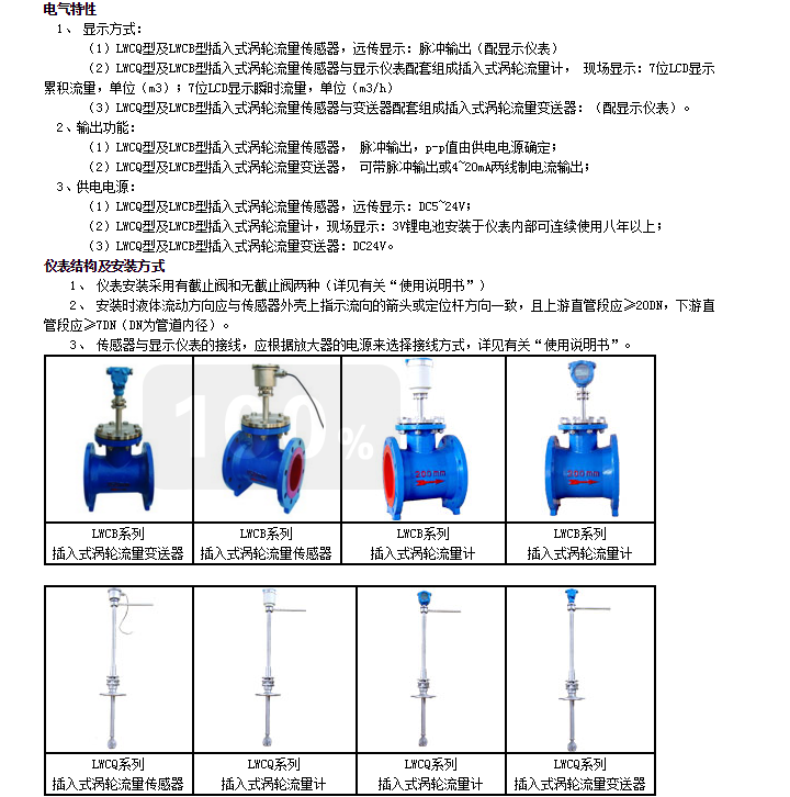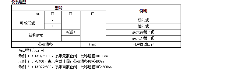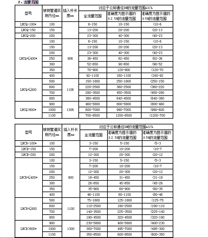 LWCQ-100*,LWCQ-150,LWCQ-200,LWCQ≤400*,LWCQ≤800,LWCQ>800*,插入式渦輪流量流量計