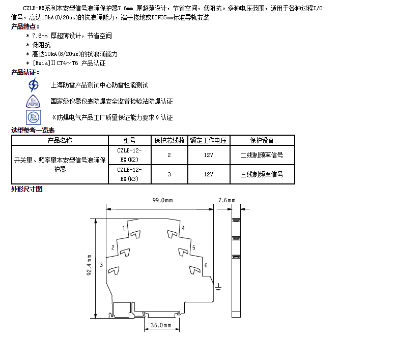 CZLB-12-EX(K2),CZLB-12-EX(K3),信號(hào)浪涌保護(hù)器