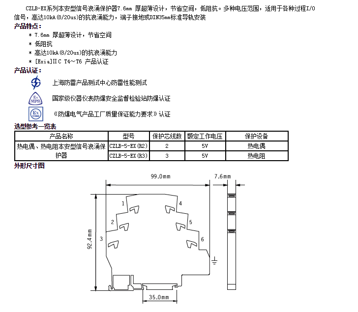 CZLB-5-EX(R2),CZLB-5-EX(R3),信號浪涌保護(hù)器