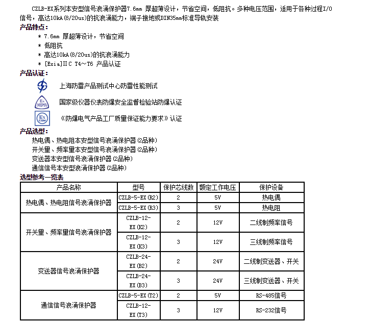 CZLB-5-EX(R2),CZLB-5-EX(R3),CZLB-12-EX(K2),CZLB-12-EX(K3),信號(hào)浪涌保護(hù)器