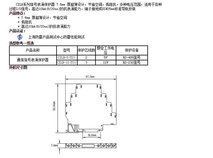 CZLB-5(T2),CZLB-12(T3),信號(hào)浪涌保護(hù)器