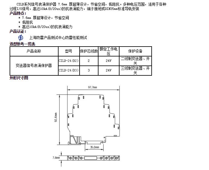 CZLB-24(B2),CZLB-24(B3),信號(hào)浪涌保護(hù)器