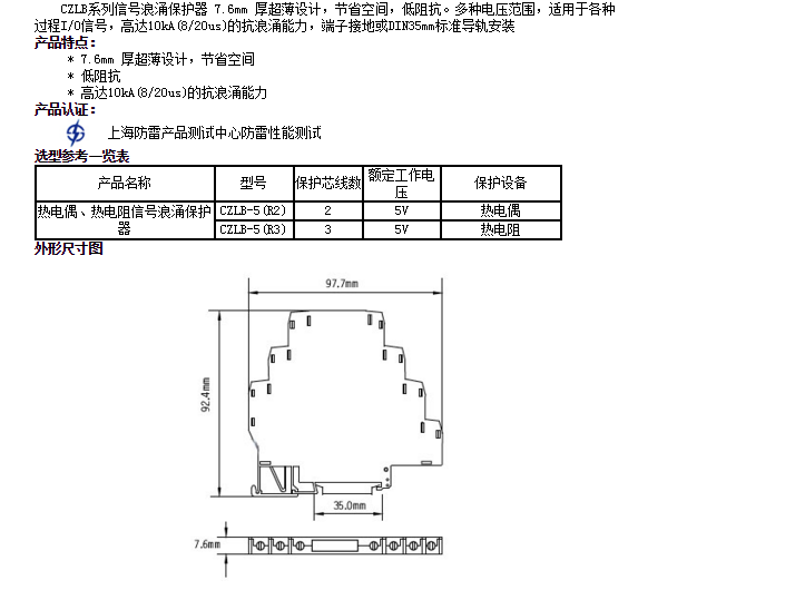 CZLB-5(R2),CZLB-5(R3),信號浪涌保護器