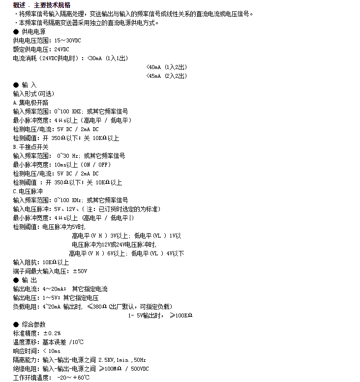 KH-5021,KH-5022,頻率信號輸入隔離安全柵