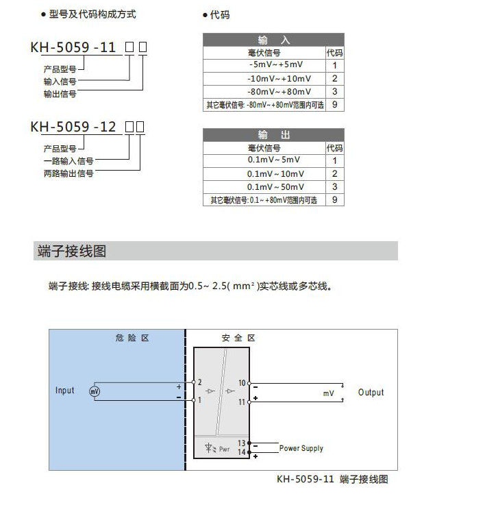 KH-5059-11,KH-5059-12,直流毫伏信號(hào)輸入隔離安全柵