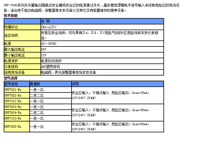 SWP7021-Ex,SWP7022-Ex,SWP7121-Ex,SWP7023-Ex,隔離式安全柵