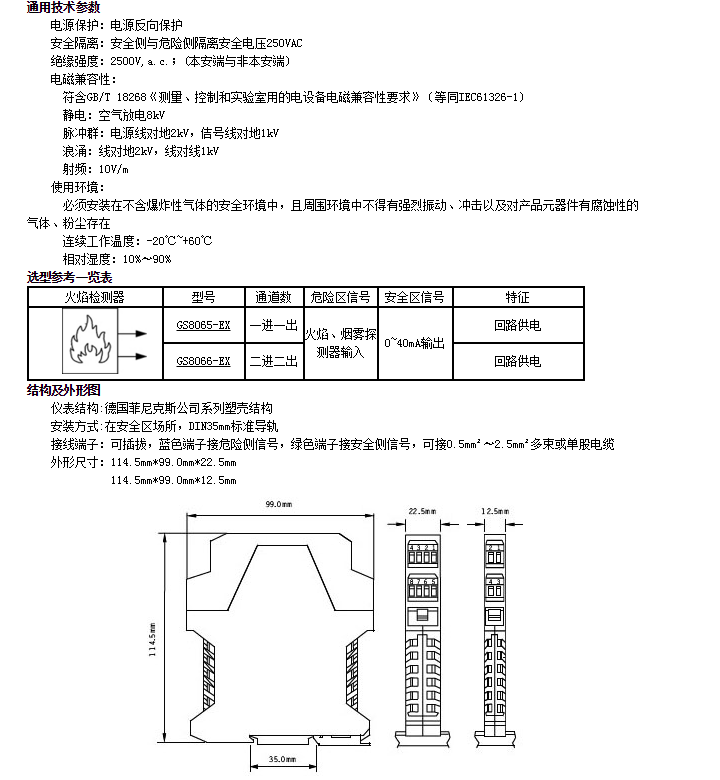 GS8065-EX,GS8066-EX,隔離式安全柵