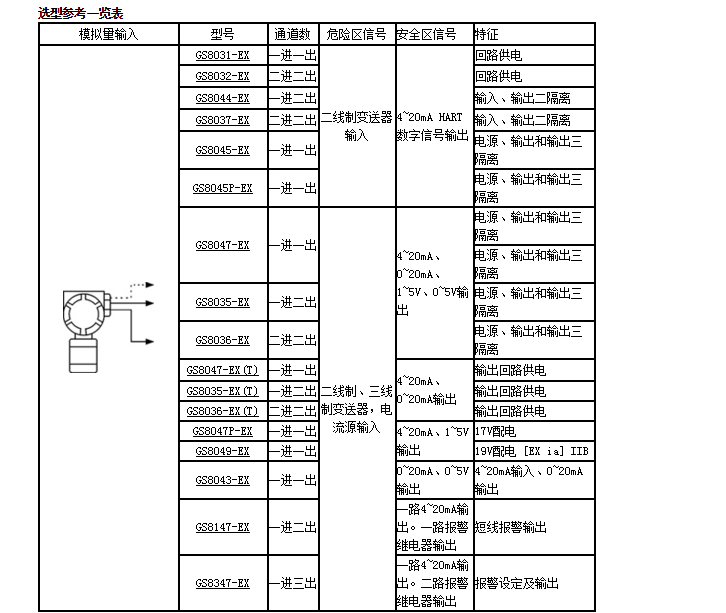 GS8031-EX,GS8032-EX,GS8044-EX,GS8037-EX,GS8045-EX,模擬量輸入隔離柵