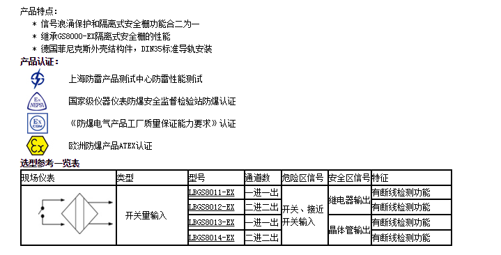 LBGS8011-EX,LBGS8012-EX,LBGS8013-EX,LBGS8014-EX,開關量輸入浪涌保護隔離柵