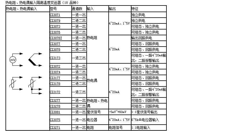 CZ3000系列信號(hào)隔離器、轉(zhuǎn)換器、報(bào)警設(shè)定器是連接于工業(yè)現(xiàn)場(chǎng)儀表與控制室之間的電氣設(shè)備。它通過(guò)電源、輸入、輸出之間的可靠隔離,有效解決工業(yè)自動(dòng)化控制系統(tǒng)現(xiàn)場(chǎng)干擾問(wèn)題,保證系統(tǒng)的穩(wěn)定和可靠運(yùn)行。它是通用型產(chǎn)品,基本覆蓋自控系統(tǒng)中各種信號(hào)隔離、轉(zhuǎn)換、分配、報(bào)警等功能要求。