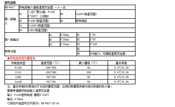 KH-6917-02-A1,熱電阻輸入智能溫度變送器