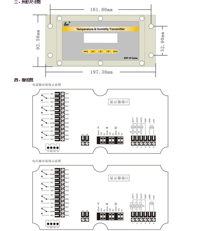 SWP-HF 系列溫濕度露點變送控制器采用數(shù)字化溫濕度傳感器數(shù)字信號作為信號輸入,產(chǎn)品具有溫濕度、露點測量精度高、穩(wěn)定可靠、工作溫度范圍寬等特點,適合要求測量精度高等暖通或者工業(yè)等多種場合的應(yīng)用。