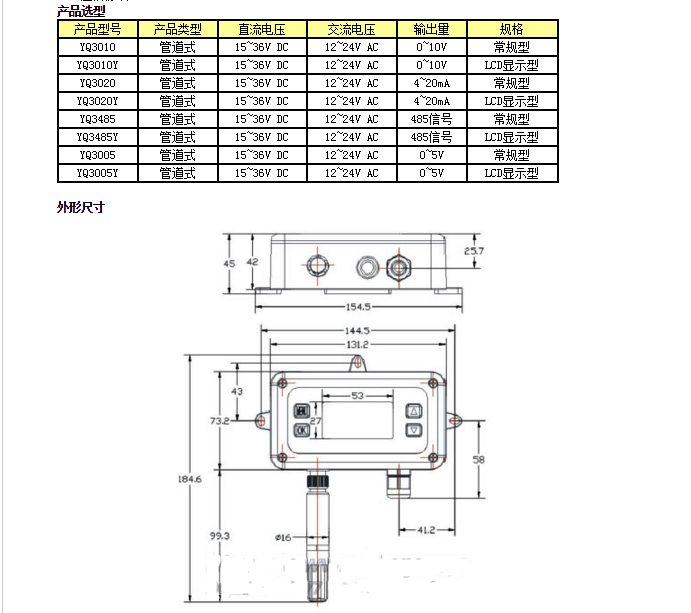 YQ3010,YQ3010Y,YQ3020,YQ3020Y,YQ3485,YQ3485Y,YQ3005,YQ3005Y,壁掛式溫濕度變送器