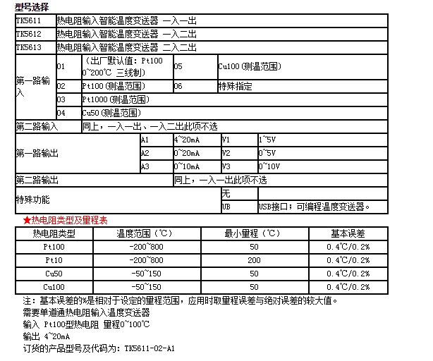 測(cè)量范圍: 見(jiàn)選型訂貨欄目中的“熱電阻分度號(hào)及量程表”