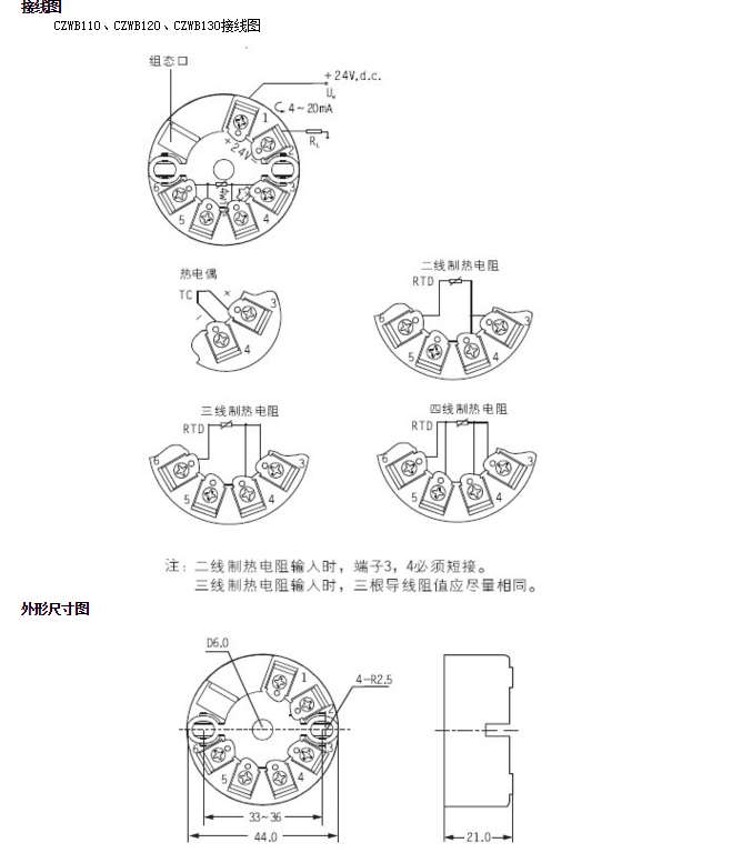 溫度量程范圍:根據連接的傳感器類型 熱電阻傳感器連接形式: 2線制或3線制