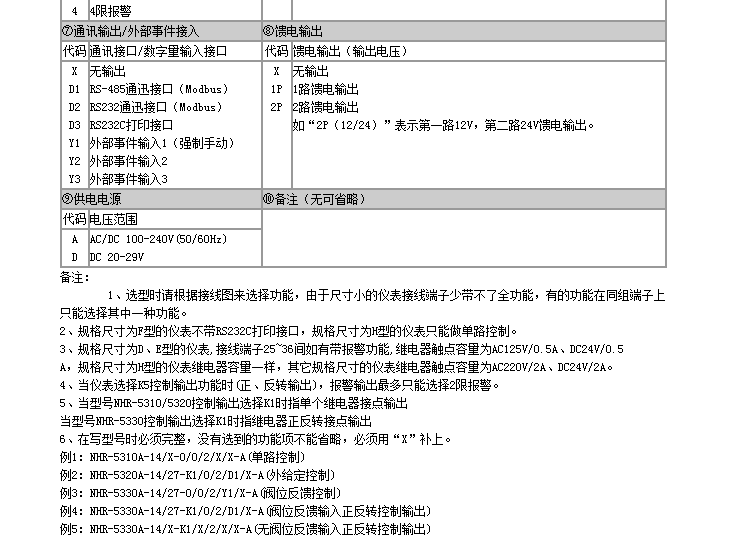 NHR-5300系列人工智能PID調(diào)節(jié)器采用微分先行的控制算法,帶有外給定和閥位控制功能??膳c各類傳感器、變送器配合使用,實(shí)現(xiàn)對溫度、壓力、液位、容量、速度等物理量的測量顯示,并配合各種執(zhí)行器對電加熱設(shè)備和電磁、電動閥進(jìn)行PID調(diào)節(jié)和控制、報(bào)警控制、數(shù)據(jù)采集等功能。 雙屏LED數(shù)碼顯示,且?guī)в泄庵M指示功能(0~100%)。 具備36種信號輸入功能,可任意選擇輸入信號類型;0.2%級測量精度。 具備“上下限報(bào)警”、“偏差報(bào)警”、“LBA報(bào)警”、“閃爍報(bào)警”等報(bào)警功能,帶LED報(bào)警燈指示。 可帶一路PID控制輸出和一路模擬量變送輸出,具有電流、電壓、SSR驅(qū)動、單/三相可控硅過零觸發(fā)、繼電器接點(diǎn)等輸出控制方式可選擇。 帶PID參數(shù)自整定功能,控制輸出手動/自動無擾切換功能,控制準(zhǔn)確且無超調(diào)。 支持RS485、RS232串行接口,采用標(biāo)準(zhǔn)MODBUS RTU通訊協(xié)議。 儀表可帶RS232C打印功能,具有手動打印、定時(shí)打印、報(bào)警打印等功能。 帶DC24V饋電輸出,為現(xiàn)場變送器配電。 輸入、輸出、電源、通訊相互之間采用光電隔離技術(shù)。 具備多種外形尺寸及樣式供用戶選擇。 參數(shù)設(shè)定密碼鎖定、參數(shù)設(shè)置斷電永久保存,具備參數(shù)恢復(fù)出廠設(shè)定功能。