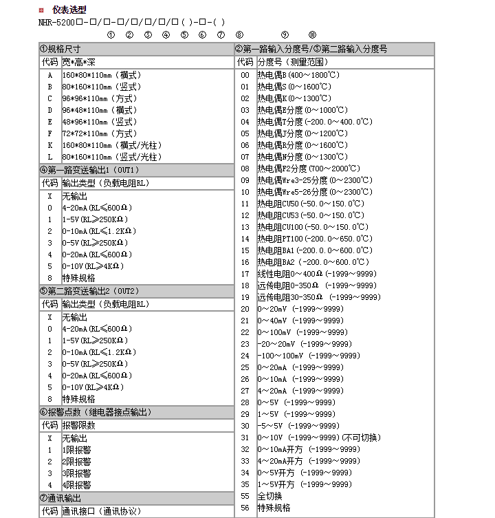 NHR-5200A-55/55-0/0/4/X/2P(24/24)-A,NHR-5200C-27/27-0/X/X/D1/X-A-Q,雙回路數(shù)字顯示控制儀
