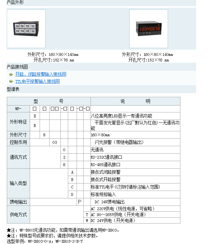 報(bào)警方式 ·音響報(bào)警:220V/8W電鈴(用戶自備),蜂鳴器(儀表內(nèi)自帶)