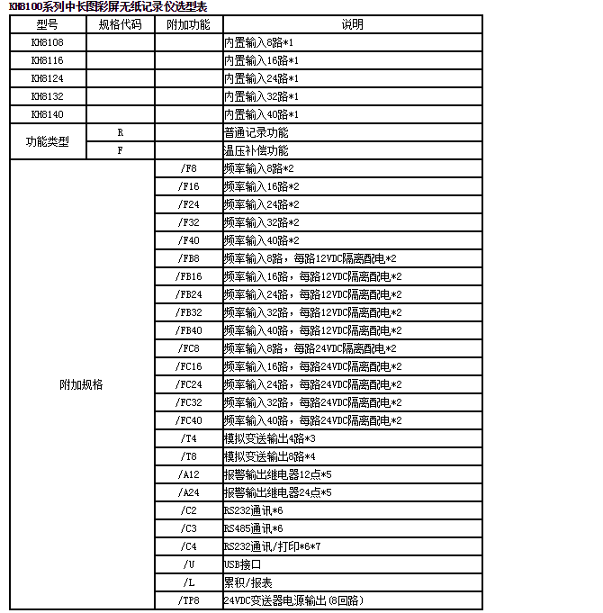 KH8100中長(zhǎng)圖彩屏無(wú)紙記錄儀,40路萬(wàn)能輸入,可輸入標(biāo)準(zhǔn)電流、標(biāo)準(zhǔn)電壓、頻率、毫伏、熱電偶、熱電阻等信號(hào)。具有傳感器隔離配電輸出、繼電器報(bào)警輸出、變送輸出、流量積算、溫壓補(bǔ)償、歷史數(shù)據(jù)轉(zhuǎn)存、打印以及遠(yuǎn)程通訊功能。