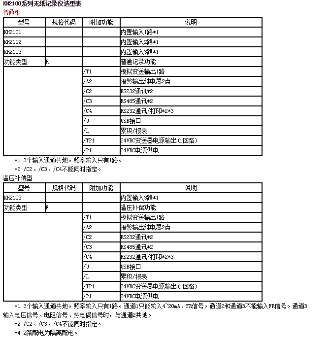 KH2100系列3通道輸入單色無紙記錄儀,可輸入標(biāo)準(zhǔn)電流、標(biāo)準(zhǔn)電壓、頻率、毫伏、熱電偶、熱電阻等信號。具有傳感器隔離配電輸出、繼電器報警輸出、變送輸出、流量積算、溫壓補償、歷史數(shù)據(jù)轉(zhuǎn)存、打印以及遠程通訊功能。