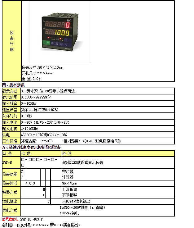 型號(hào): SWP-NC-403-P,計(jì)數(shù)/計(jì)時(shí)顯示控制儀