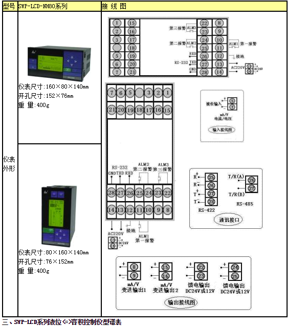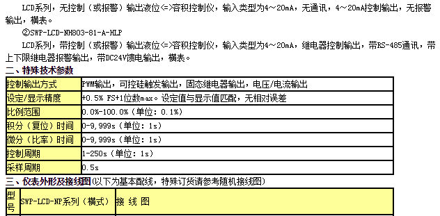 SWP-LCD-NH系列液位<=>容積控制儀可對(duì)各種形狀罐體進(jìn)行液位<=>容積轉(zhuǎn)換測(cè)量控制。
