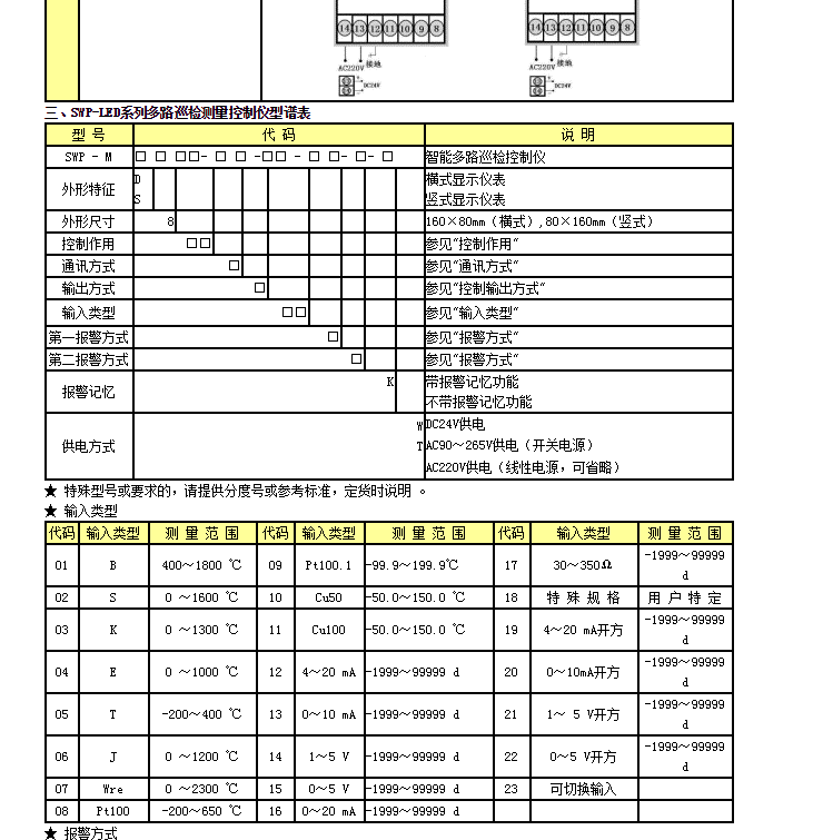 SWP-LED系列多路巡檢控制儀用于工業(yè)控制系統(tǒng)多測量點(diǎn)的巡回檢測、顯示和報(bào)警。