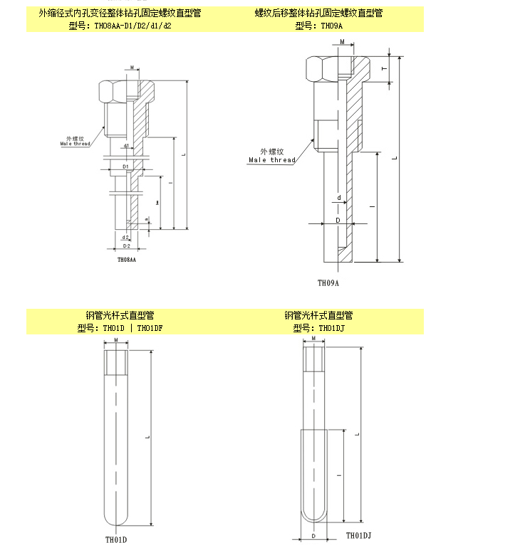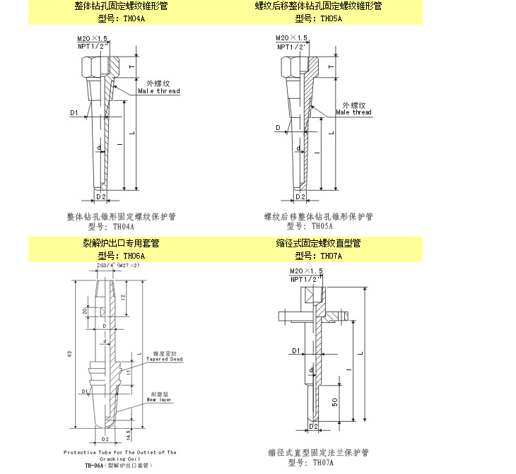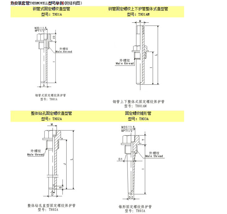 TH01A,TH01AM,TH02A,TH03A,TH04A,TH05A,TH06A,溫度傳感器熱安裝套管