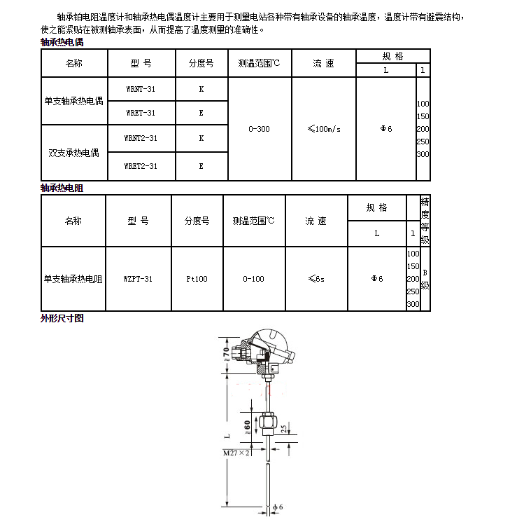 WRNT-31,WRET-31 WRNT2-31,WRET2-31,WZPT-31,軸承溫度計,熱電偶,熱電阻