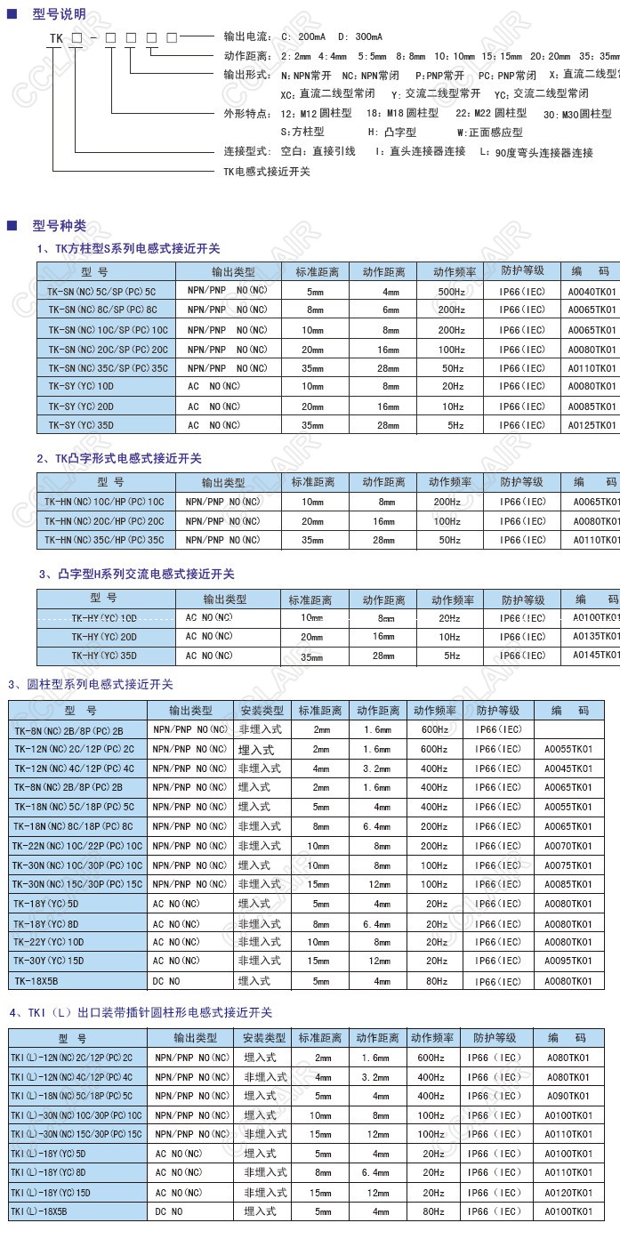 TK-SN(NC)5C/SP(PC)5C,TK-SN(NC)8C/SP(PC)8C,TK-SN(NC)10C/SP(PC)10C,TK電感式直流型接近開關(guān)